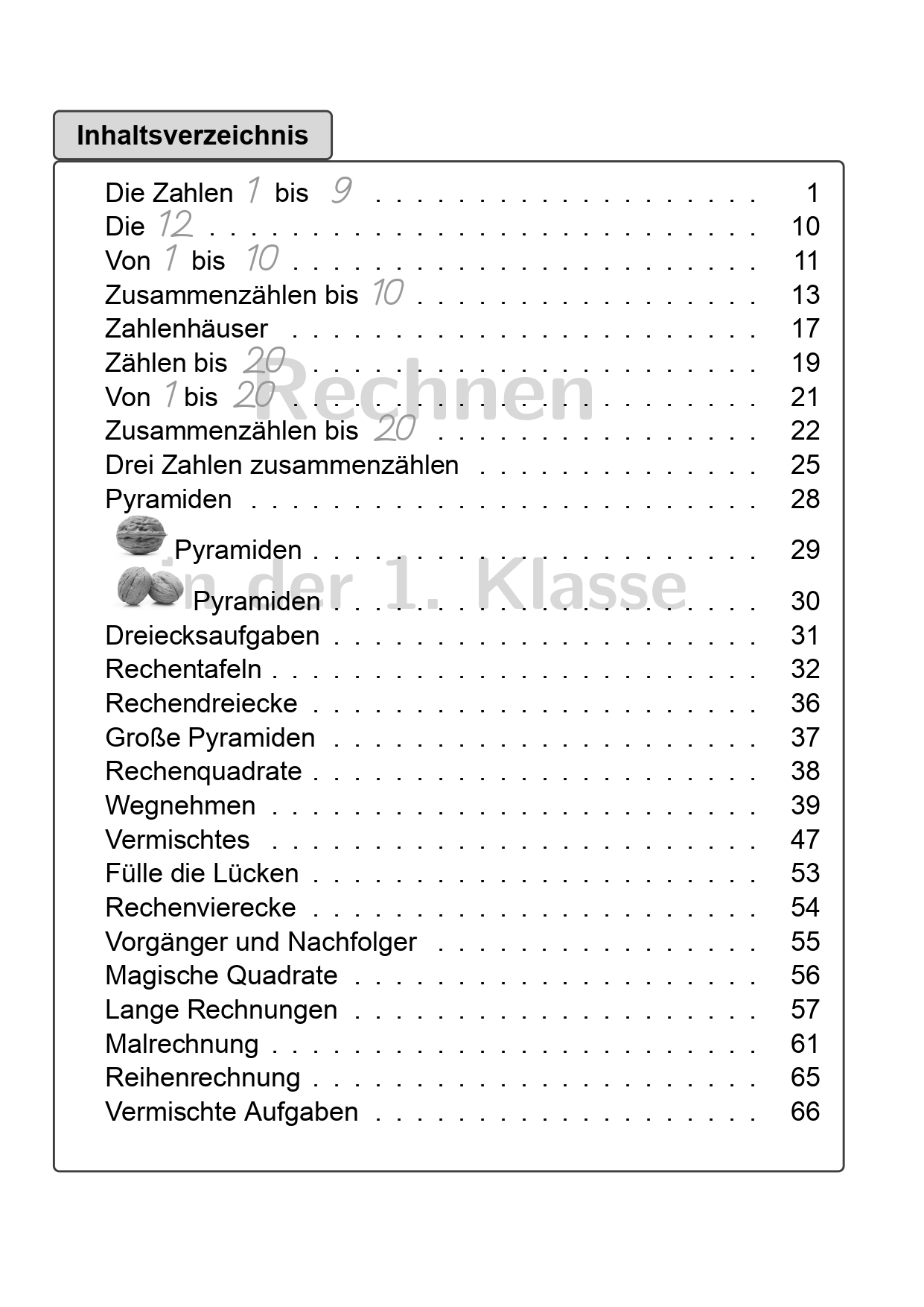 Rechenheft für Klasse 1 mit 66 Seiten auf 100 g/m² Papier.